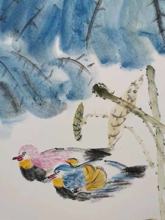 董桥说偏爱杨绛与聂华苓的文字:“她们阅历深湛,文风沉潜,境界老早攀过了世俗文学的华美,一字一句,一收一放,人生细腻的念叨一一沁人心肠,仿佛孤坐炉边坐了好多好多个冬夜才坐出这样的顿悟。”女性心灵中存在着非理性因素,纵使再理性的力量,也打动不了其心中非理性的坚固栅栏。非理性因素,恰是艺术语言的底色。虽初学,路子不可不正,“作画贵有古意,若无古意,虽工无盖。今人但知用笔纤细,敷色浓艳,便自以为能手。殊不知古意既亏,百病横生,岂可观也”,传统是中国画稳固的基础。聚古人于一堂,接丰采于几案,在博得众家之长,并蓄前人精华后,方会有己之面貌,这也是寄予常女士的建议。其意虽旧,道理皆知,却能弥久不竭,常说常新,何以然?廉不言贫,勤不言劳,古之美德也。花鸟画是大自然的人文关怀,花鸟画的程式,不仅在于梅兰菊竹、翎毛蜂蝶,更在于微忱芹意、神志感受。花鸟画即常女士的情感语言,牡丹可以不分季节地绽放,葫芦里可能装着也可能不装着,所有的季节,其实都是心在消磨,所有的襟怀,其实都可在某一日空空落落,方寸为清。画者,心画也。常女士是位英语教师,以我早年所学,不足以与之对话,但她的花鸟画语言,时常引共鸣。