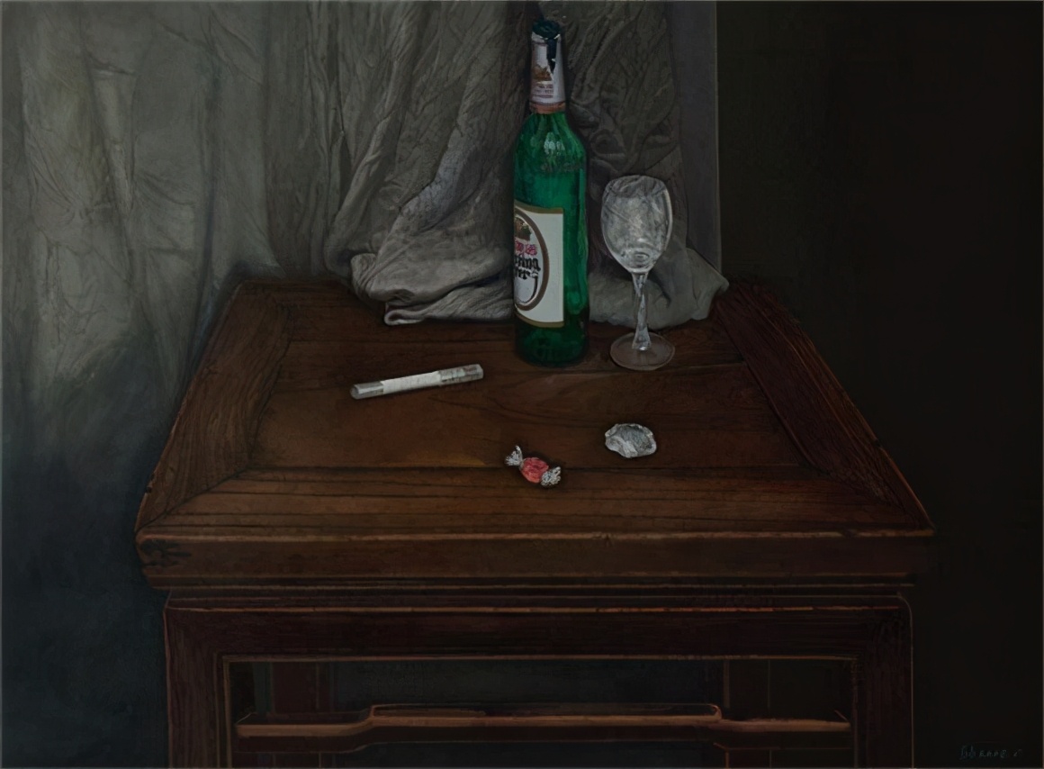痴迷的画家往往令人联想到一个勤勉劳作的农夫,日日在他的土地上耕耘收获,艰辛中透着自得其乐。这些画家更甘愿面对自己的作品去自问,从中获取内心的平衡和解脱。因此,在关月的作品中,无论肖像画或静物画,都有她自身的影子在画面中飘忽,在她笔下所呈现的孤寂与怜惜,即是她女性特质的写照,也是她情感注入下的投影,虽然有些冷艳,但非常真切亦深邃。她的作品很古典也很写实,真正吸引我的却是在写实和古典画面下那令人无法琢磨的情景,似真似幻中牵动的也正是每人内心中不由自主的那种超现实的奢望心结。