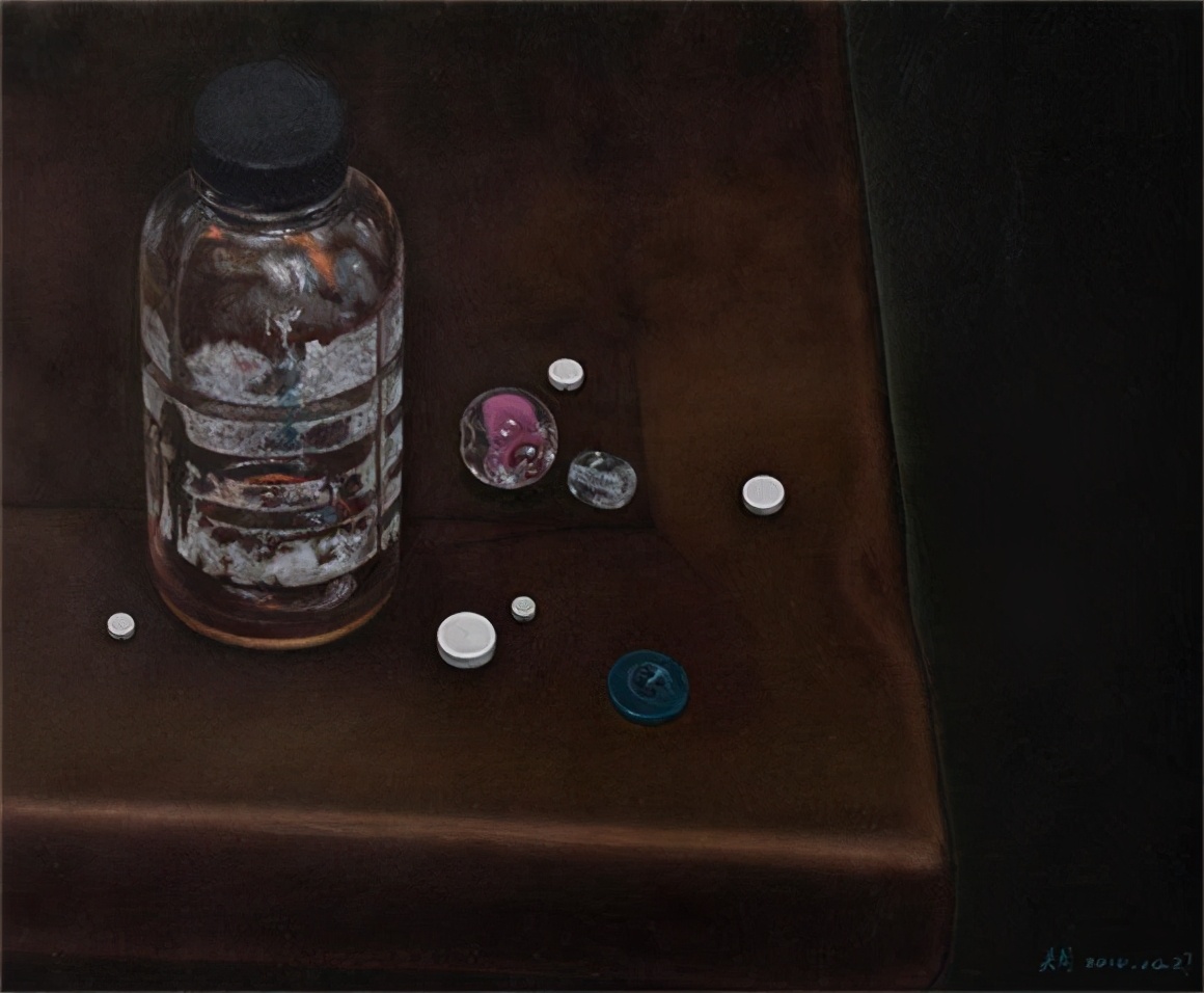 从画面上的视觉效果来看我不禁会产生疑惑,她将我们引入何方?难以让我理解的是她作品中所透露出来的怀旧情愫,因为她本身所处的年代与其所表达的情景是如此遥远,但她尽将自己生生嵌入一个已被人们遗忘的时代。在她的每一个细微的表达对象里:一把金属刀、碎裂的玻璃瓶片、枯萎的月季和那些五光十色的纽扣与药片,还有那些忧郁自怜的少女… …,或许让你因此能感受到来自穿越的美感,还有那来自遥远的沉静。这又不得不让我们相信,怀旧并非其终极愿望,个人情感的依托才是其实质所在。孤独因此成就了她游离于尘世间的心绪,而这自然成为她绘画表达中的精髓,尽管有些许的苦涩和伤感,甚至有些萎靡,但仍然魅力无限。要知道,在艺术范畴内是没有绝对的贬义词,只有是否具有生命的活力。