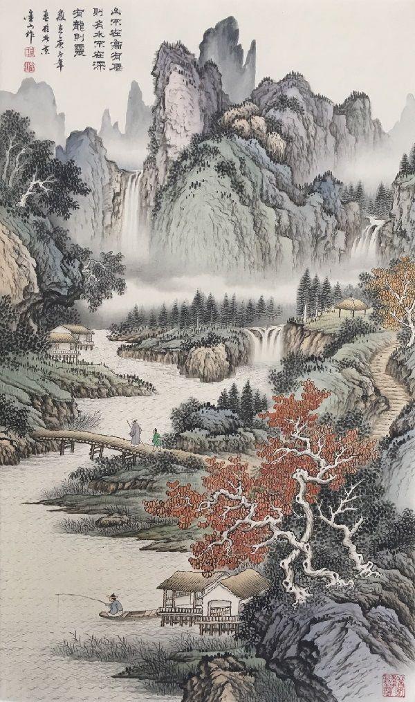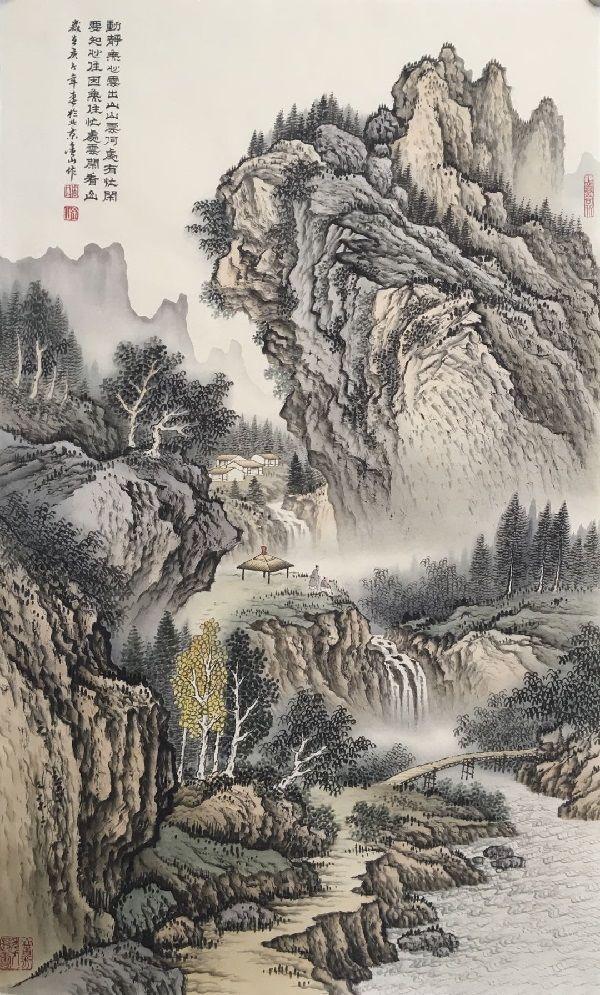 因此,對於壹個中國山水畫家來說,其作品的經典往往是通過“造境”來體現出的。這種山水風格的特征,更是畫家精神世界的展示。畫家在自己的山水世界中,尋找著壹種心靈的寄托,而不是機械照搬生活的原型素材。干萬裹的追尋,正是創造出適應於自我的題材與手法,以及渐積漸深的審美趣味。因而山水畫的“造境”便是在寫生的基礎上形成的壹種創作規律,它充分體現了經典的意義,並於詩、書、畫、印等方面的努力,形成個人的藝術風格,以及獨特的藝術魅力。